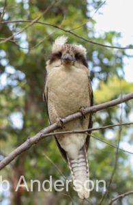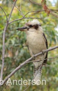 Kookaburras – The second sequence of images: “It’s mine!” No, it’s mine!!” These two kookaburras were absolutely motionless facing each other, with the poor lizard in the middle of their tug-of-war. Suddenly, one lost its hold, there was a fight and the chase was on. The lizard was lost in nearby bush, so probably escaped, leaving both kookaburras sitting on a low bough staring at the undergrowth.