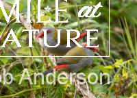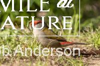 Red-Browed Finch/Firetail – Photo sequence taken in Lane Cove National Park. While sitting near a shallow pool lit by dappled sunlight, a pair landed for a bath. In the photo this one seems to be saying, “watch this!”
