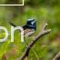 Variegated Fairy-wren – male with brightly coloured head and body with longer tale feathers; female with brown head, dark grey bill and longer tale feathers; photos taken near Wollongong, New South Wales.