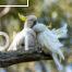 Little Corellas – scrapping over one Liquidambar nut, when there were thousands of nuts freely available on the ground and on the trees. Photo and those below were taken in Riverview, Lane Cove, Sydney. The Little Corella is full of character and one of my favourite birds. They are playful, acrobatic and feisty as shown below. I spent two to three hours every morning for three weeks photographing the behaviour of these lovely birds. On some days there were flocks of hundreds of birds feeding in the trees, on the ground and grazing on the grass.